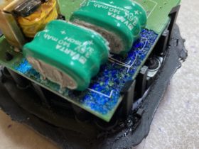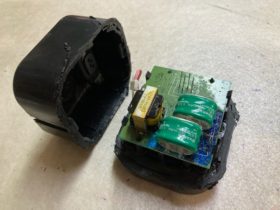 非分解式ですが、壊れた方をカットしてみました。正規の付け方では、バッテリーの下に基盤が来るので、漏れた場合即基盤が