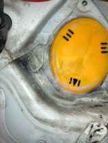 泥を洗い流し、今後同じ様にならないよう、キャップ周りはシリコンシールを塗り、仕切りのインシュレーターは排水穴を開けました。